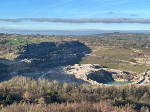 A quarry might be seen amidst the inexperienced fields within the distance from the highest.