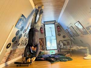 The bottom flooring entrance is technically the attic bear in mind because it’s all the other way up. It’s decked out to appear to be an adolescent’s bed room with some primary furnishings, framed footage on the partitions and a skateboard!